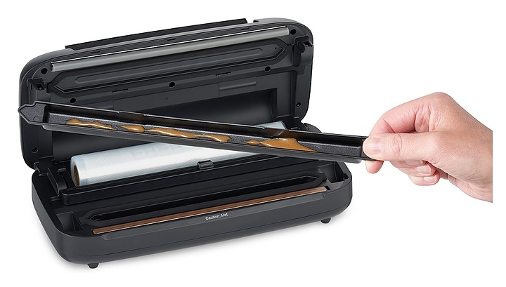 Вакуумный упаковщик CASO VRH 590 используется в частных домах, квартирах, отелях и офисах для упаковки в вакуум мяса, рыбы, овощей, фруктов и домашних заготовок в пакетах или контейнерах для увеличения срока хранения. Модель оснащена встроенным резаком для пленки, съемной вакуумной камерой и съемным поддоном для сбора влаги. Корпус выполнен из пластика, вставка - из нержавеющей стали с покрытием против отпечаткоы пальцев. В комплект поставки входят шланг для вакуумирования контейнеров и 10 пакетов 200x300 мм и 1 рулон 280х3000 мм. Вакуумные контейнеры в комплект поставки не входят и приобретаются отдельно. Особенности: