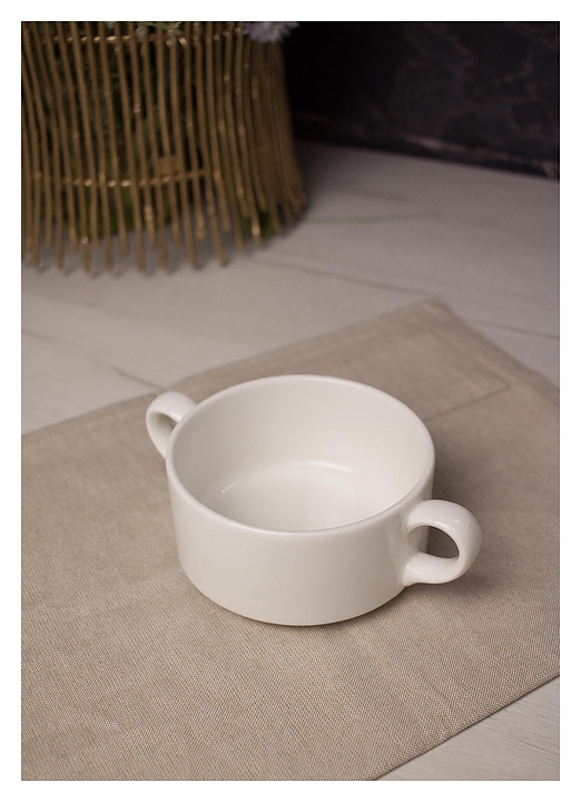 Суповая чашка Ariane Prime 300 мл используется на предприятиях общественного питания и торговли. Посуда отличается высокой прочностью, устойчива к механическим повреждениям, царапинам и сколам, выдерживает значительные перепады температур, что позволяет использовать ее в духовых шкафах, микроволновых печах и посудомоечных машинах. Изделие выполнено из высококачественного фарфора, произведенного из высокосортного глиноземистого материала, полностью покрытого специальной глазурью, обожженной при высоких температурах. Особенности: