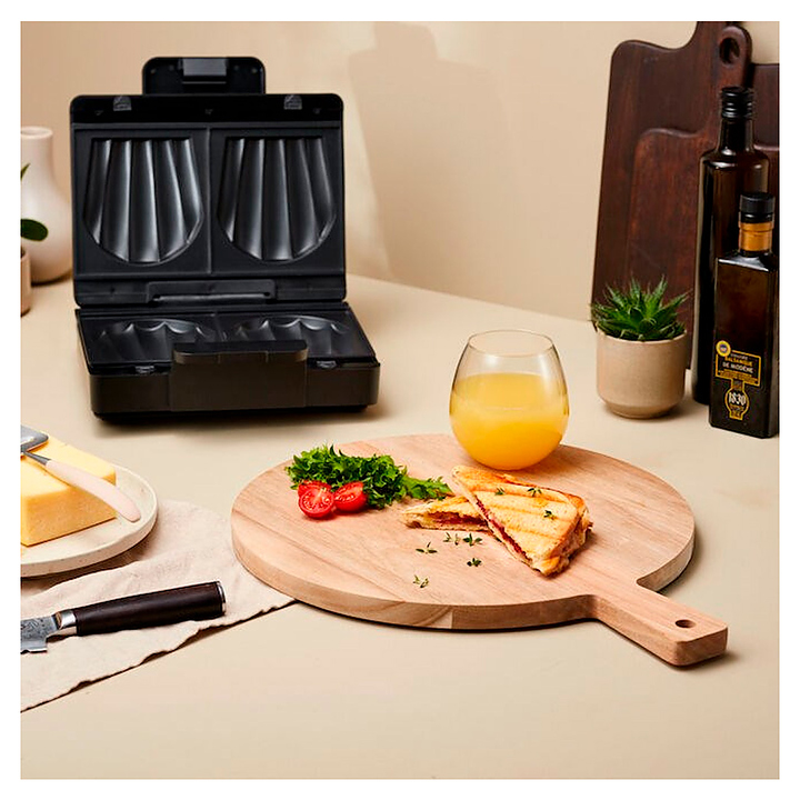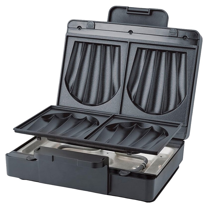 Сэндвичница Wilfa SAM1B-1000 используется в отелях, офисах, а также домашних условиях для приготовления горячих сэндвичей. Модель прямоугольно ориентированной формы оснащена 2 створками с трубчатыми нагревательными элементами, съемными верхней и нижней жарочными поверхностями с 2 стилизованными под форму морских раковин рельефными секциями, кабелем питания с вилкой и контрольным индикатором на верхней панели. Корпус выполнен из прочного пластика черного цвета. Особенности: