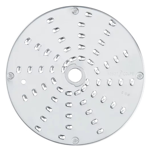Диск-терка Robot Coupe 27150 серии Стандарт используется совместно с овощерезками CL30 Bistro и CL40 для натирания и шинковки овощей и фруктов и дальнейшего использования их в качестве ингредиентов для приготовления супов, салатов, гарниров и пр. на предприятиях общественного питания и торговли. Изделие выполнено из нержавеющей стали. Подходит для мытья в посудомоечной машине. Характеристики: