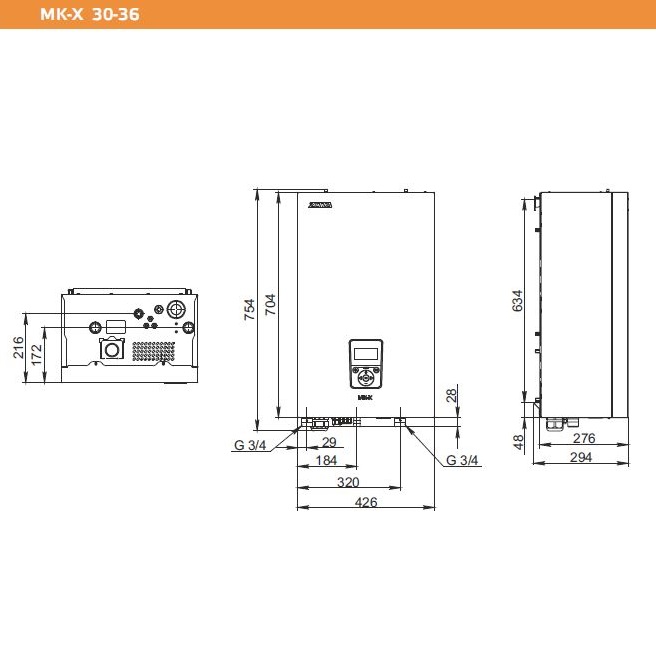 Электрический котел Zota MK-X 36 предназначен для обогрева жилых и производственных помещений, а также нагрева воды для технических целей. Модель оснащена вертикально ориентированными баком, защитным кожухом, 3-х скоростным циркуляционным насосом Zota Ring 25/70, манометром, расположенным на фронтальной панели многофункциональным электронным контроллером X-Line 100E с мембранной клавиатурой и информативным графическим дисплеем с цифровыми и символьными сегментами индикации, бак сварной конструкции имеет 3 блока трубчатых электронагревателей (ТЭНов) сверху, входной и выходной патрубки для теплоносителя снизу. Защитный кожух выполнен из листовой стали с внешним антикоррозийным покрытием порошковой краской белого цвета, ТЭНы – из аустенитной нержавеющей стали с нихромовой спиралью, упаковка – из гофрокартона.