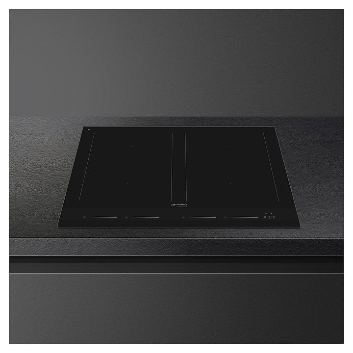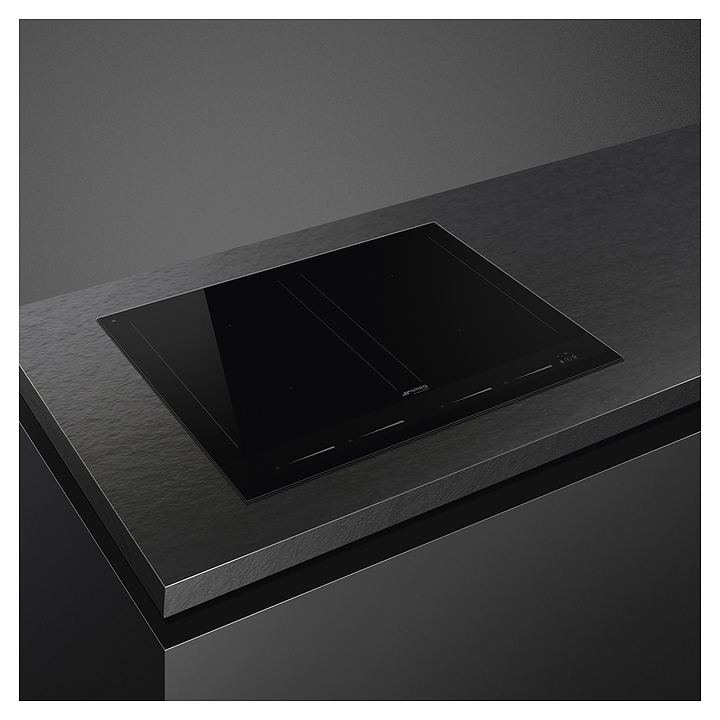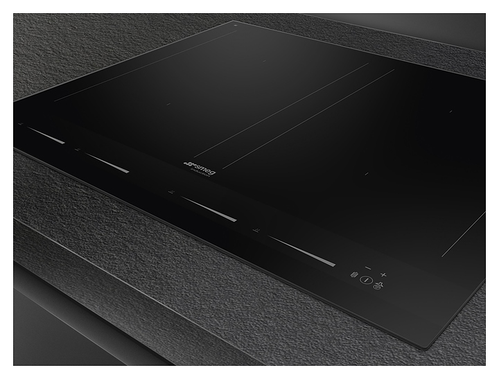Индукционная варочная панель SMEG SIM1644Dпредназначена для приготовления большого ассортимента блюд в домашних условиях. Принцип работы основан на непосредственном нагреве металлической посуды создаваемыми высокочастотным магнитным полем индуцированными вихревыми токами. Модель оснащена 4 варочными зонами, сенсорной панелью управления, 5 цифровыми дисплеями с индикацией белого цвета и кабелем питания. Рабочая поверхность выполнена из высококачественной стеклокерамики черного цвета с рамкой по периметру и сериографией серого цвета.