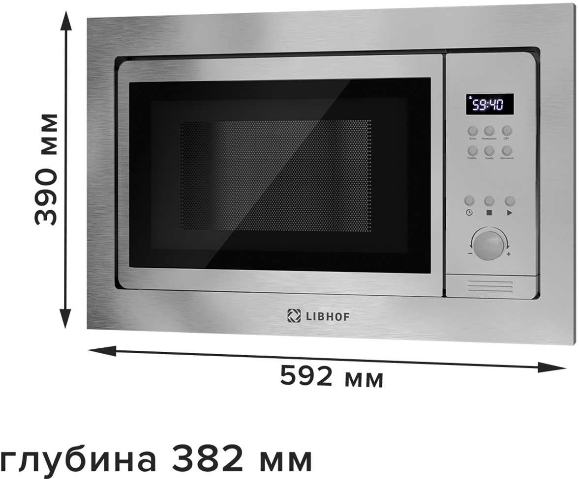 Микроволновая печь Libhof MWB-6025S предназначена для приготовления пищи, подогрева готовых блюд и ингредиентов, а также размораживания полуфабрикатов в частных домах, квартирах, отелях и офисах. Модель оснащена цифровым управлением, кварцевым грилем, дверцей с боковым открыванием и внутренней подсветкой. Фасад выполнен из нержавеющей стали. В комплект поставки входят вертел, вращающаяся тарелка из боросиликатного стекла и металлическая подставка для гриля. Особенности:
