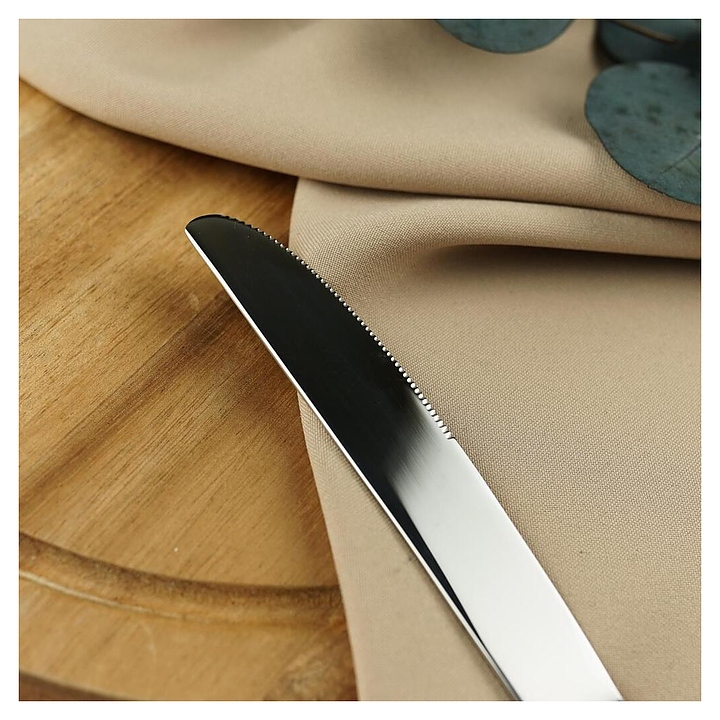 Нож P.L. Proff Cuisine Davinci New Scales DJ-05157/81240481 используется в качестве столового прибора при подаче вторых блюд на предприятиях общественного питания и в домашних условиях. Модель оснащена головкой с зазубренным лезвием, рукояткой с декоративным рельефом и каплевидным наконечником. Изделие выполнено из нержавеющей стали с глянцевой серебристой поверхностью. Дополнительные характеристики:
