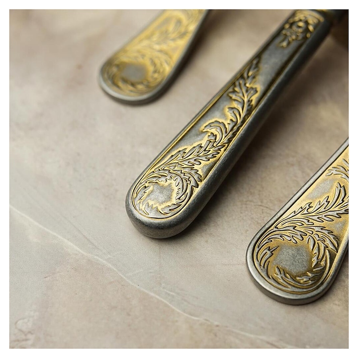 Чайная ложка P.L. Proff Cuisine Lord Vintage Style S143-10 используется в качестве столового прибора при подаче чая на предприятиях общественного питания и в домашних условиях. Модель оснащена головкой классической формы и рукояткой с широким округлым наконечником. Изделие выполнено в винтажном стиле из нержавеющей стали с шероховатой серебристой поверхностью, декоративным рельефом в виде растительных элементов на рукоятке и золотистой патиной. Внимание! Информация о товарах, размещенная на сайте, не является публичной офертой, определяемой положениями Части 2 Статьи 437 Гражданского кодекса Российской Федерации. Производители вправе вносить изменения в технические характеристики, внешний вид и комплектацию товаров без предварительного уведомления. Уточняйте характеристики у наших менеджеров перед оформлением заказа. |