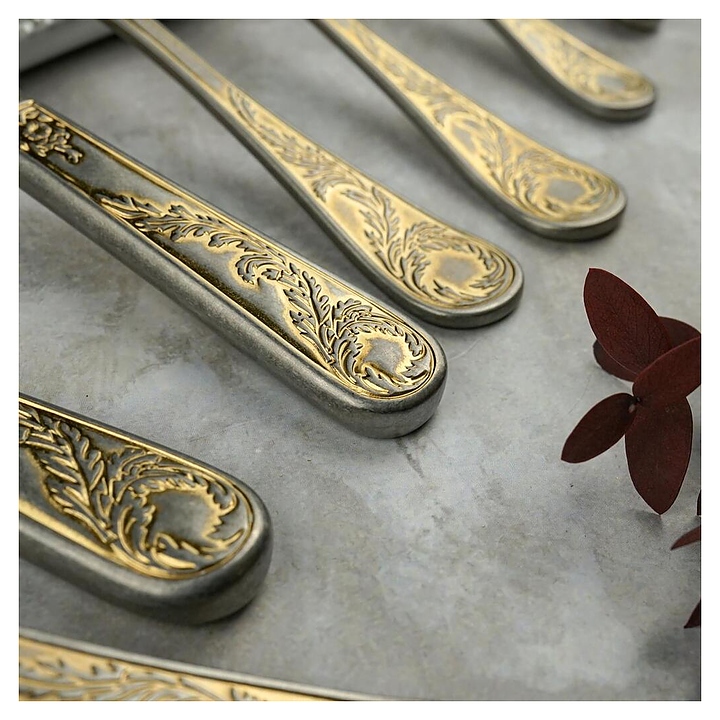 Десертная ложка P.L. Proff Cuisine Lord Vintage Style S143-7 используется в качестве столового прибора при подаче десертов на предприятиях общественного питания и в домашних условиях. Модель оснащена головкой классической формы и рукояткой с широким округлым наконечником. Изделие выполнено в винтажном стиле из нержавеющей стали с шероховатой серебристой поверхностью, декоративным рельефом в виде растительных элементов на рукоятке и золотистой патиной. Внимание! Информация о товарах, размещенная на сайте, не является публичной офертой, определяемой положениями Части 2 Статьи 437 Гражданского кодекса Российской Федерации. Производители вправе вносить изменения в технические характеристики, внешний вид и комплектацию товаров без предварительного уведомления. Уточняйте характеристики у наших менеджеров перед оформлением заказа. |