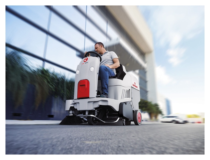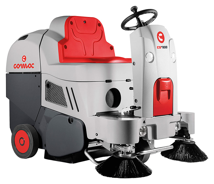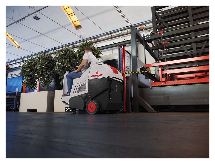 Подметальная машина Comac CS 700 B предназначена для технической уборки складов, служебных зон, автомоек и помещений общественного назначения, логистических сооружений, ремесленных мастерских и предприятий автобизнеса. Модель оснащена местом оператора с защитной крышей, запатентованной системой ротационной фильтрации, электрическим встряхивателем фильтра, зарядным устройством и светодиодными фарами. Особенности: