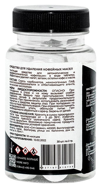 Таблетированное средство CUP 5 MINI используется не предприятиях общественного питания и торговли для эффективной очистки автоматических и профессиональных кофемашин от налета, остатков кофе, кофейных масел, а также устранения запахов. Состав: смесь карбонатов, неионогенных поверхностно активных компонентов (ПАВ), комплексообразователя и отбеливающего агента на основе кислорода. Средство поставляется в цилиндрической банке со съемной крышкой. Цена указана за 1 шт. Дополнительные характеристики: