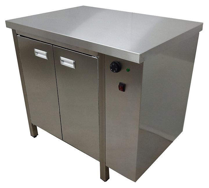 Тепловой стол ЦМИ Профи СТТпДРС-120/70 используется для подогрева тарелок перед сервировкой, а также для сохранения блюд и напитков в горячем виде на предприятиях общественного питания и торговли. Модель оснащена терморегулятором в правой фронтальной части изделия, кнопками включения и выключения, лампой индикации, 2 распашными дверьми с 2 сторон, 2 сплошными полками, 4 устойчивыми ножками и вентилятором. Изделие полностью выполнено из нержавеющей стали. Особенности: