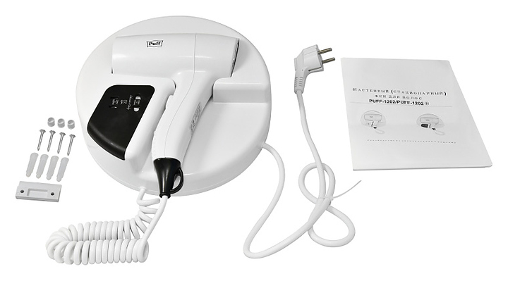 Настенный фен Puff 1202B предназначен для быстрой сушки и комфортной укладки в спорткомплексах, фитнес-центрах, бассейнах, отелях, гостиницах, частных домах и квартирах. Модель оснащена 2 режимами сушки по температуре, опцией холодного воздуха и дополнительной розеткой. Корпус выполнен из ударопрочного ABS-пластика. Особенности: