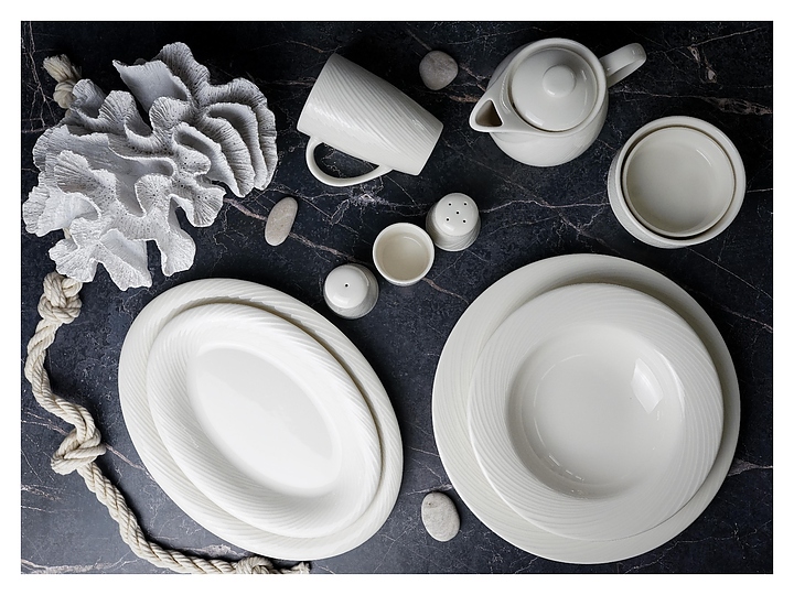 Тарелка Porland 185917 серии Storm предназначена для профессионального использования на предприятиях общественного питания. Декор изделия отличается уникальным дизайном с плавными волнообраными линиями. Посуда изготавливается по запатентованной технологии Alumilite с добавлением оксида алюминия, что делает ее устойчивой к сколам, механическим и термическим воздействиям. Изделие выполнено из твердого фарфора и покрыто высококачественной тугоплавкой глазурью Feldspatic. Особенности: