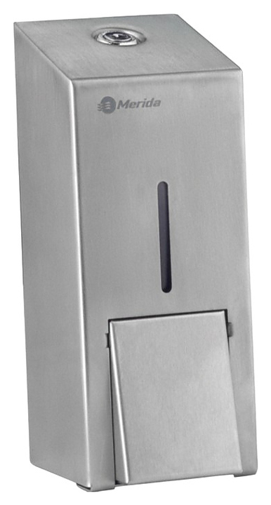 Дозатор Merida STELLA R MINI DSM102.R предназначен для размещения и дозированной подачи жидкого мыла и других жидкостей в общественных санитарных узлах гостиниц, предприятий общепита, медицинских учреждений и других мест массового пребывания. Модель оснащена окошком индикации уровня мыла и барабанным замком. Корпус изготовлен из матовой нержавеющей стали AISI 304 толщиной 1 мм. Особенности:
