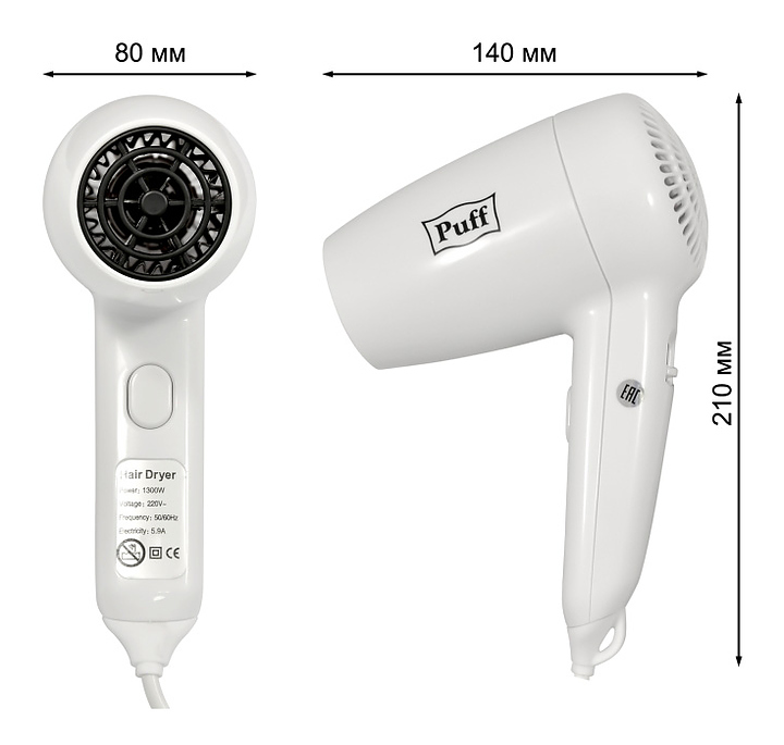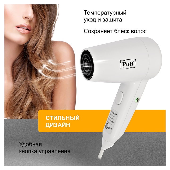 Фен Puff 1300 предназначен для быстрой сушки и комфортной укладки волос. Модель оснащена кнопкой принудительного включения, 2 скоростями сушки, 2 режимами температуры. Корпус выполнен из ударопрочного ABS-пластика. Особенности: