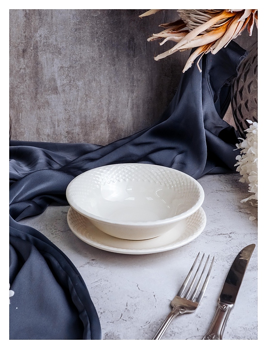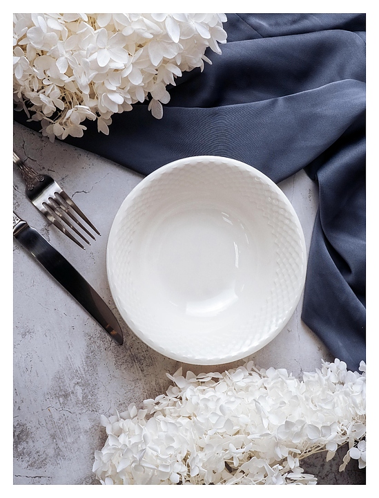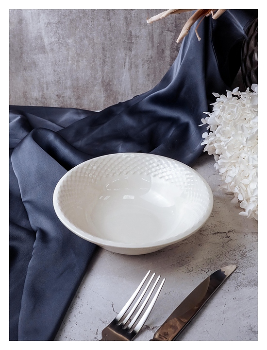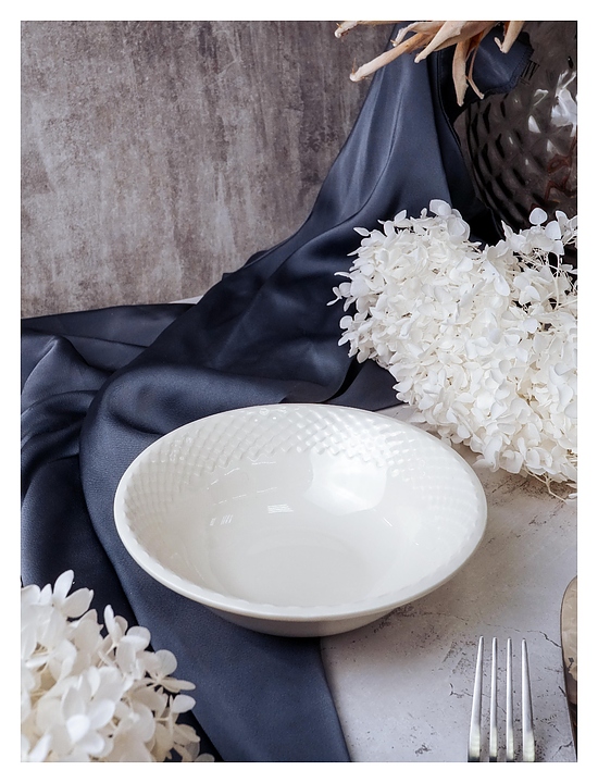 Салатник Porland 36BB16 серии Aqua Alumilite предназначен для профессионального использования на предприятиях общественного питания. Декор изделия отражает простоту и лаконичность и отличается рельефным узором. Посуда изготавливается по запатентованной технологии Alumilite с добавлением оксида алюминия, что делает ее устойчивой к сколам, механическим и термическим воздействиям. Изделие выполнено из твердого фарфора и покрыто высококачественной тугоплавкой глазурью Feldspatic. Особенности: