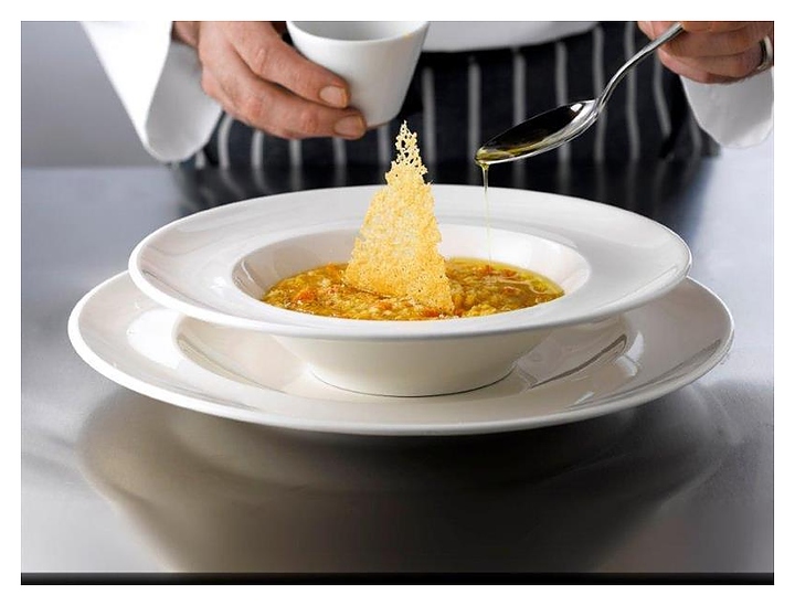 Тарелка Porland 112124 серии Soley предназначена для профессионального использования на предприятиях общественного питания. Декор изделия отличается простотой и лаконичностью. Посуда изготавливается по запатентованной технологии Alumilite с добавлением оксида алюминия, что делает ее устойчивой к сколам, механическим и термическим воздействиям. Изделие выполнено из твердого фарфора и покрыто высококачественной тугоплавкой глазурью Feldspatic. Особенности: