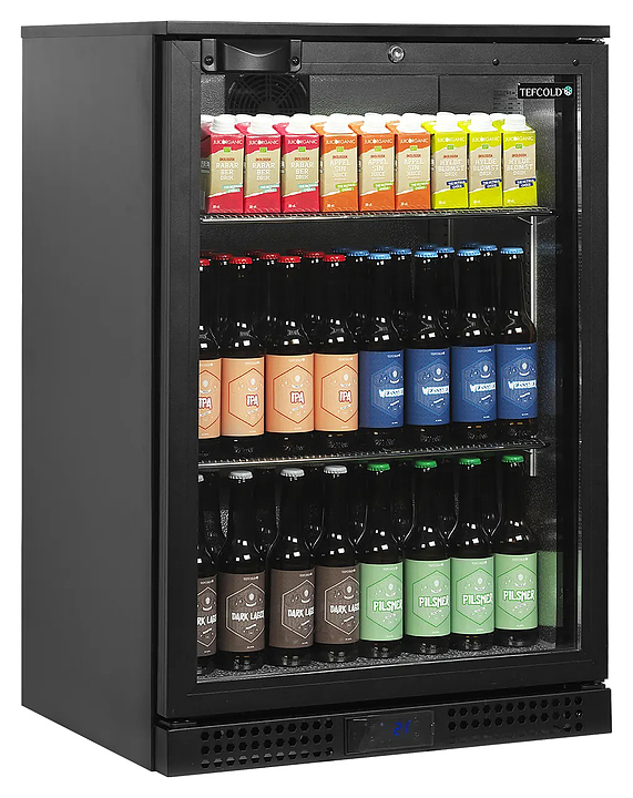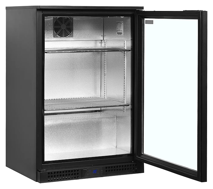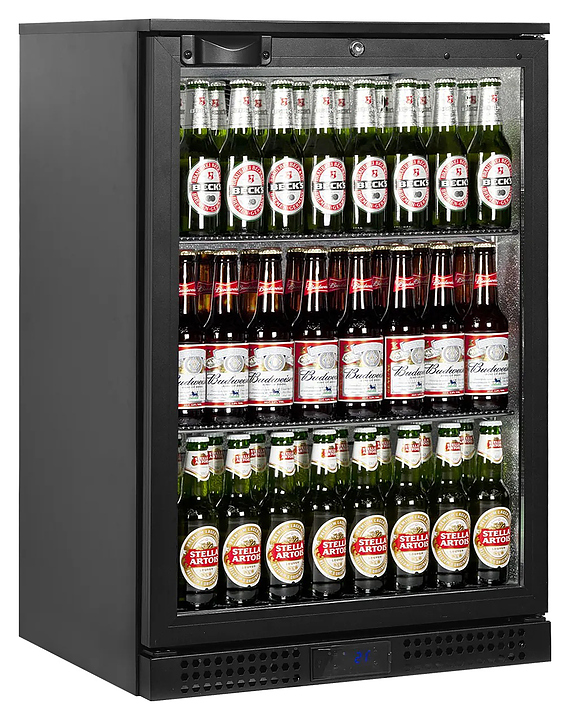 Барный холодильный шкаф TEFCOLD BA11H предназначен для использования в барах, кафе, ресторанах для охлаждения и хранения различных напитков. Модель оснащена распашной стеклянной перенавешиваемой дверью, 2 регулируемыми хромированными полками, термометром, электронным блоком управления, LED-подсветкой, замком и 4 регулируемыми ножками. Размер и расположение полок предполагает использование банок объёмом 330 и 500 мл. Изделие имеет внутреннюю отделку из рифленого алюминия. Особенности: