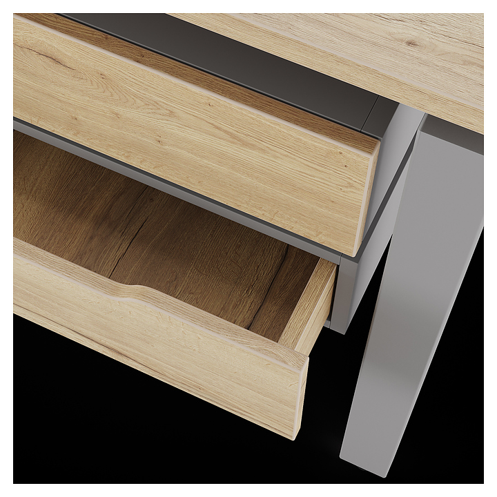 Компьютерный стол Кобор КP-160/80 aluminum/natural используется в офисных помещениях и кабинетах руководителей. Модель оснащена П-образными опорами. Каркас выполнен из металла, выкрашенного в цвет алюминиевый металлик (RAL9006), столешница – из ламинированной древесно-стружечной плиты (ЛДСП) цвета натуральный дуб (H1180 ST37). Опции (заказываются отдельно):