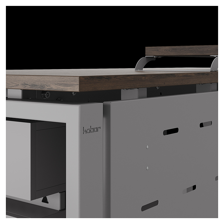 Компьютерный стол Кобор КP-140/80 aluminum/charlston используется в офисных помещениях и кабинетах руководителей. Модель оснащена П-образными опорами. Каркас выполнен из металла, выкрашенного в цвет алюминиевый металлик (RAL9006), столешница – из ламинированной древесно-стружечной плиты (ЛДСП) цвета дуб чарльстон (H3154 ST36). Опции (заказываются отдельно):