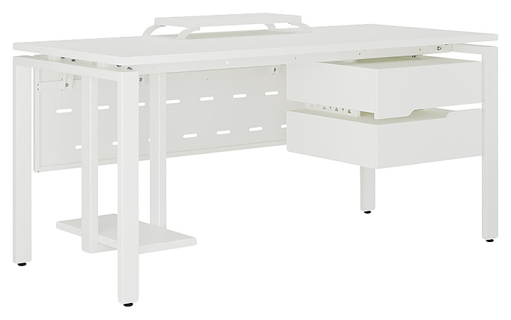 Компьютерный стол Кобор KP-180/70 white/premium используется в офисных помещениях и кабинетах руководителей. Модель оснащена П-образными опорами. Каркас выполнен из металла, выкрашенного в цвет белый муар (RAL9016), столешница – из ламинированной древесно-стружечной плиты (ЛДСП) цвета белый премиум (W1000 ST9). Опции (заказываются отдельно):