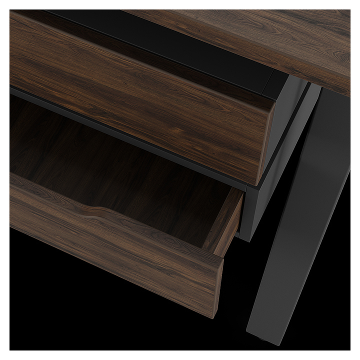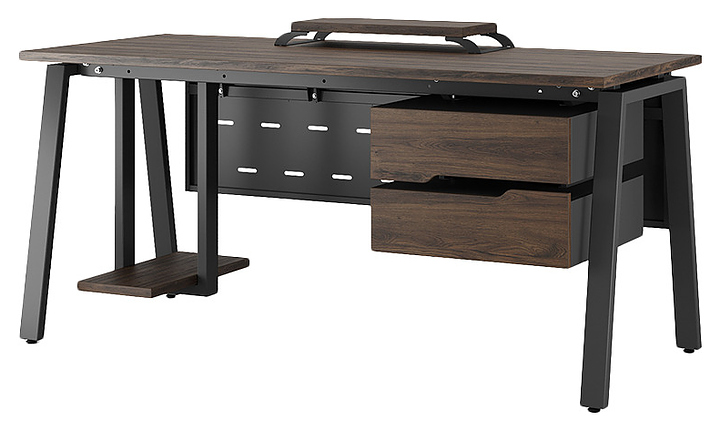 Компьютерный стол Кобор KA-180/80 black/charlston используется в офисных помещениях и кабинетах руководителей. Модель оснащена A-образными опорами. Каркас выполнен из металла, выкрашенного в цвет черный муар (RAL9005), столешница – из ламинированной древесно-стружечной плиты (ЛДСП) цвета дуб чарльстон (H3154 ST36). Опции (заказываются отдельно):