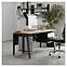 Компьютерный стол Кобор KAB-120/60 black/natural используется в офисных помещениях и кабинетах руководителей. Модель оснащена A-образными опорами со скошенными фронтальными сегментами. Каркас выполнен из металла, выкрашенного в цвет черный муар (RAL9005), столешница – из ламинированной древесно-стружечной плиты (ЛДСП) цвета натуральный дуб (H1180 ST37).