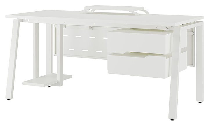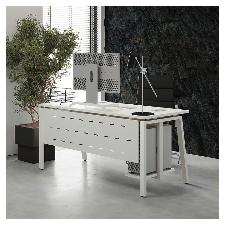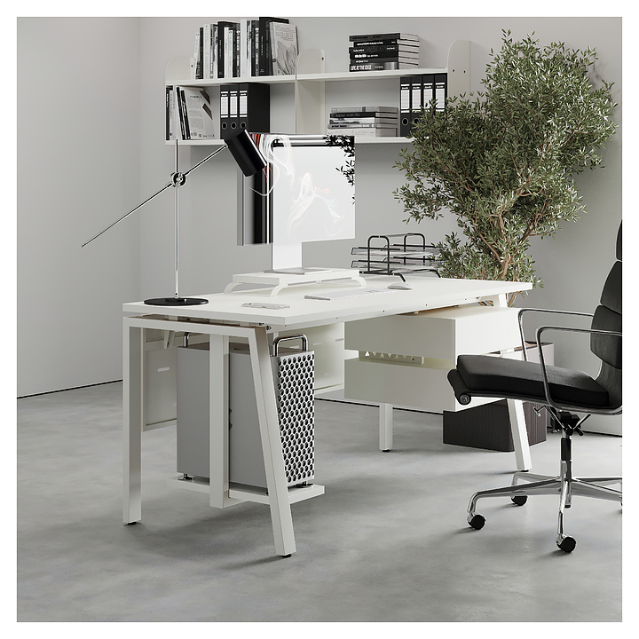 Компьютерный стол Кобор КAB-120/80 white/premium используется в офисных помещениях и кабинетах руководителей. Модель оснащена A-образными опорами со скошенными фронтальными сегментами. Каркас выполнен из металла, выкрашенного в цвет белый муар (RAL9016), столешница – из ламинированной древесно-стружечной плиты (ЛДСП) цвета белый премиум (W1000 ST9). Опции (заказываются отдельно):