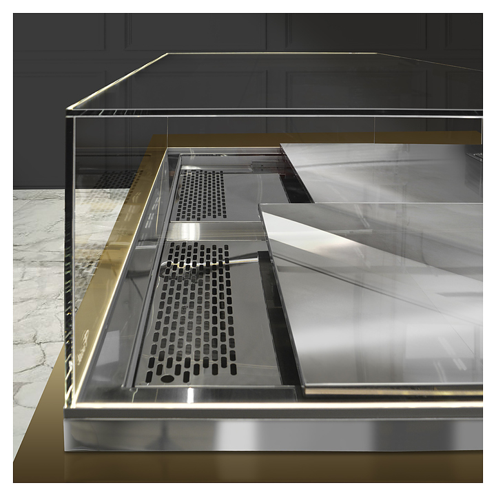 Встраиваемая горизонтальная кондитерская витрина Finist Glassier SLIDE DUO GSD-14/7/3 предназначена для кратковременного хранения, предпродажной демонстрации и эффектной подачи кондитерских изделий на предприятиях общественного питания и торговли. Технология Drop-In гарантирует монтаж в столешницу из любого материала. Двойной выдвижной поддон позволяет с лёгкостью доставать выбранные блюда без риска повреждения стоящих по соседству десертов. Корпус выполнен из высококачественной нержавеющей стали. Особенности: