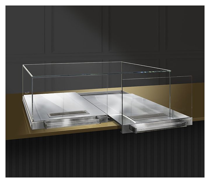 Встраиваемая горизонтальная кондитерская витрина Finist Glassier SLIDE DUO GSD-13/7/3 предназначена для кратковременного хранения, предпродажной демонстрации и эффектной подачи кондитерских изделий на предприятиях общественного питания и торговли. Технология Drop-In гарантирует монтаж в столешницу из любого материала. Двойной выдвижной поддон позволяет с лёгкостью доставать выбранные блюда без риска повреждения стоящих по соседству десертов. Корпус выполнен из высококачественной нержавеющей стали. Особенности: