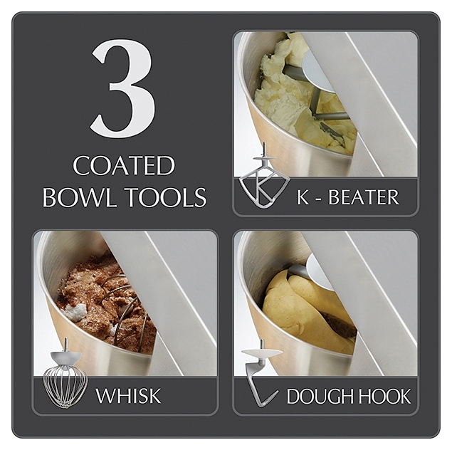 Кухонный комбайн Kenwood KMM 770 (06) предназначен для замеса теста, а также нарезки, измельчения и смешивания различных продуктов в домашних условиях. Устройство позволяет заменить собой ряд кухонных приборов, необходимых для приготовления широкого спектра блюд. Электронный контроль скорости и наличие высокоскоростного и низкоскоростного гнез для насадок значительно расширяют функциональные возможности комбайна. Двойное охлаждение двигателя гарантирует долгую бесперебойную работу прибора. Корпус устройства выполнен из цельнолитого алюминия, чаша - из матовой нержавеющей стали. Съемные части комбайна можно мыть в посудомоечной машине. В комплект поставки входят насадка-блендер, К-образная насадка для смешивания, шарообразный венчик, крюк для теста, кулинарная лопатка и защита от брызг. Особенности: