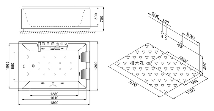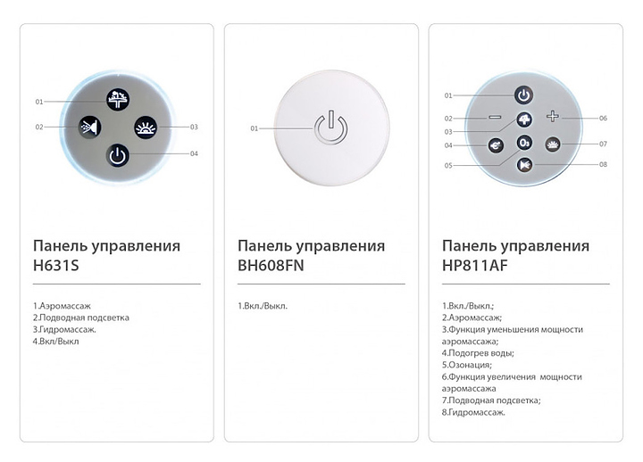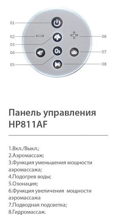 В комплект поставки входят большие и маленькие гидромассажные форсунки, аэромассажные форсунки, водняной и воздушный насосы.