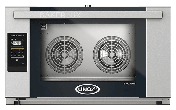 Печь конвекционная UNOX XEFR-04EU-EGDN Rossella серии BAKERLUX SHOP.Pro предназначена для допекания замороженных изделий, выпечки хлебобулочных и кондитерских изделий полного цикла на предприятиях общественного питания и торговли, в пекарнях и кондитерских. Модель оснащена электронным управлением с сенсорным ЖК-дисплеем диагональю 2,4" и светодиодным овещением камеры. Камера выполнена из нержавеющей стали AISI 304, направляющие для противней - из хромированной стали. Пекарские листы в комплект поставки не входят и приобретаются отдельно. 2 режима работы: