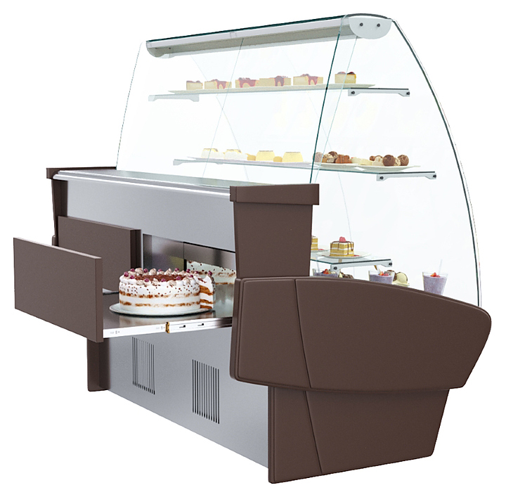 Кондитерская витрина Carboma K95 SM 1,2-1 (ВХСд-1,2) используется на предприятиях общественного питания и торговли для демонстрации, охлаждения и кратковременного хранения тортов, пирожных и других кондитерских изделий. Модель оснащена гнутым передним стеклом, 3 полками, выдвижными поддонами и регулируемыми ножками высотой от 20 до 35 м. Корпус выполнен из стали с ППУ-изоляцией, зона выкладки и столешница - из нержавеющей стали, раздвижные задние створки - из оргстекла. Особенности: