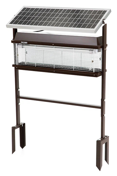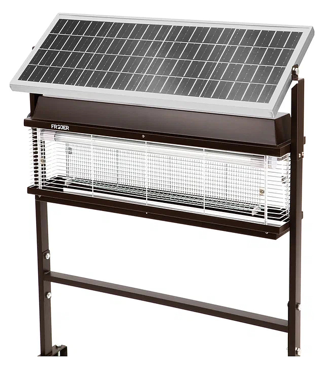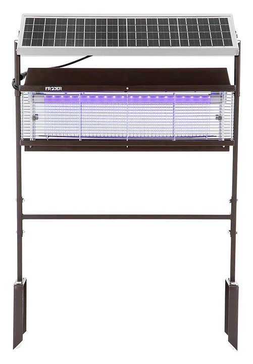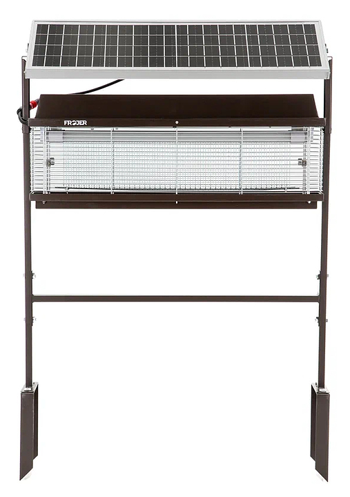 Инсектицидная лама FROJER PRO X6 Solar предназначена для привлечения ультрафиолетовым излучением и уничтожения электрическим током комаров, мух, мотыльков и прочих летающих вредителей посредством находящихся под высоким напряжением металлических решеток в беседках, кемпингах и прочих открытых локациях. Модель оснащена LED светодиодами, встроенным Li-ion аккумулятором и съемной солнечной панелью. Влагозащитный корпус выполнен из листового металла с антикоррозийным покрытием. Особенности: