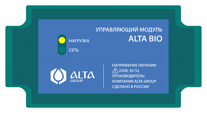 Управляющий модуль Alta Group Bio предназначен для самотечного отвода воды на станциях глубокой биохимической очистки хозяйственно-бытовых сточных вод Bio 3, Bio 3 OR, Bio 5, Bio 5 OR, Bio 5 Low, Bio 7, Bio 7 OR, Bio 10 и Bio 15. Модель выпускается без внешнего пластикового корпуса, задачу корпуса выполняет формованный компаунд, которым полностью залита рабочая плата и все компоненты модуля. Особенности: