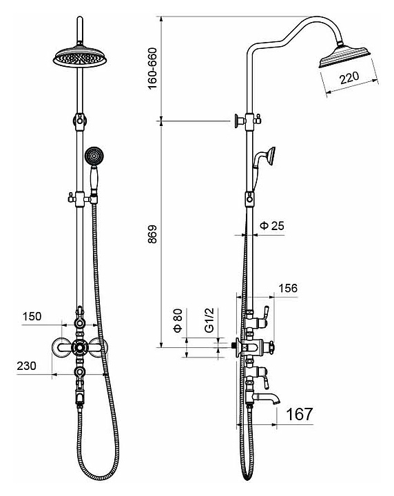 Душевая система Aquatek Классик AQ2543PG предназначена для использования в ванных помещениях для подачи горячей и холодной воды. Модель оснащена поворотным изливом для наполнения ванны, круглым верхним тропическим душем с изменяемым углом, круглым однорежимным ручным душем, душевым шлангом, а также термостатическим картриджем, обеспечивающим поддержание необходимой температуры в независимости от давления воды. Изделие выполнено из латуни, отличающейся прочностью, долговечностью и устойчивостью к перепадам температур, душевой шланг и верхний душ - из нержавеющей стали. В комплект поставки входят душевая система, смеситель и монтажный комплект. Особенности: