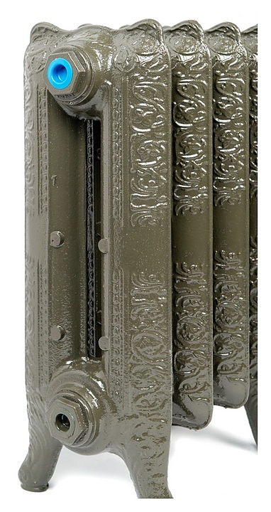 Дизайнерский радиатор Alpine Air HISTORY 350 предназначен для обогрева помещений всех типов, а также послужит прекрасным украшением интерьера. Обогреватель украшен орнаментом из водяных растений в стиле «Ар Нуво» (франц. «l'art nouveau» - «новое искусство»), рожденным в начале 1880 годов. Батарея дает мягкий равномерный нагрев и поглощает звуки циркуляции воды. Изделие выполнено из качественного чугуна, не невосприимчивого к коррозии, с двойным покрытием: грунт и высококачественный лак. Изделие можно использовать без дополнительной окраски. Радиаторы поставлюятся с любым количеством секций. Характеристики: