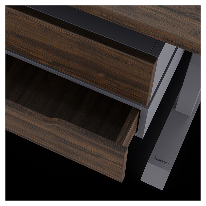 Компьютерный стол Кобор КT-160/60 graphite/charlston используется в офисных помещениях и кабинетах руководителей. Модель оснащена T-образными опорами. Каркас выполнен из металла, выкрашенного в цвет графит муар (RAL7024), столешница – из ламинированной древесно-стружечной плиты (ЛДСП) цвета дуб чарльстон (H3154 ST36). Опции (заказываются отдельно):