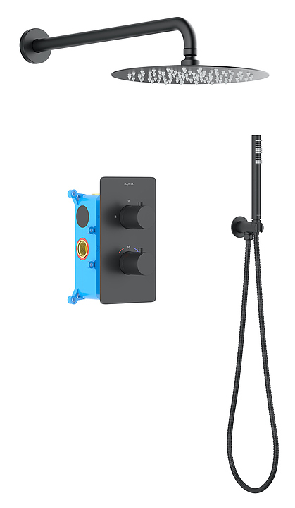 Комплект душевой встраиваемый термостатический Aquatek Европа AQ1376MB черный матовый