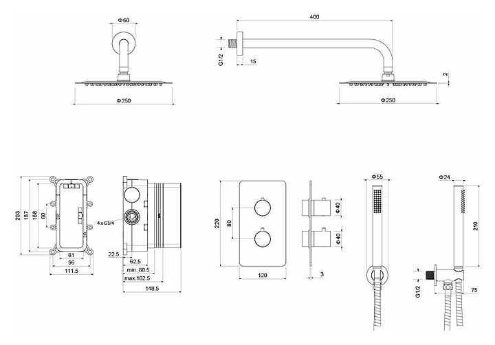 Душевой комплект Aquatek Европа AQ1376MB используется в ванных комнатах. Модель оснащена круглым верхним душем с изменяемым углом и цилиндрической ручной лейкой с душевым шлангом. Комплект оборудован термостатическим картриджем, обеспечивающим поддержание необходимой температуры в независимости от давления воды. Изделие выполнено из высококачественной латуни, которая отличается долговечностью и устойчивостью к перепадам температур, декоративные накладки - из нержавеющей стали. В комплект поставки входят смеситель, верхний душ, ручной душ, шланг для ручного душа, крепления и держатель. Особенности: