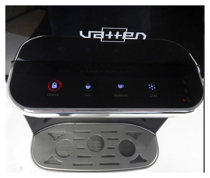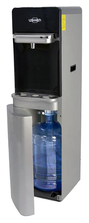 Кулер Vatten L06NK предназначен для разлива и нагрева питьевой воды в больших офисах с повышенными потребностями в горячей и холодной воде, коттеджах, террасах, бассейнах, в столовых, коктейль-барах, барах у бассейнов, небольших пляжных барах и небольших отелях. Модель оснащена одним краном с сенсорными кнопками горячей, комнатной и охлажденной воды, что гигиеничнее пуш-крана. Кнопка горячей воды имеет фиксатор защиты от детей. Кулер оснащен удобной нижней загрузкой бутыли, что позволяет произвести замену бутыли, не отрывая её от пола.