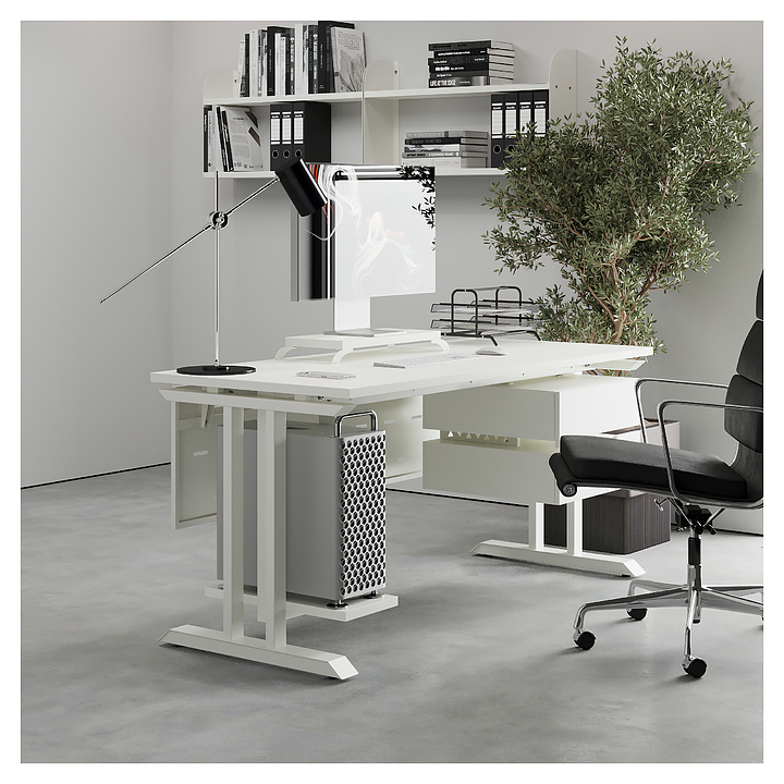 Компьютерный стол Кобор КT-100/70 white/premium используется в офисных помещениях и кабинетах руководителей. Модель оснащена T-образными опорами. Каркас выполнен из металла, выкрашенного в цвет белый муар (RAL9016), столешница – из ламинированной древесно-стружечной плиты (ЛДСП) цвета белый премиум (W1000 ST9). Опции (заказываются отдельно):