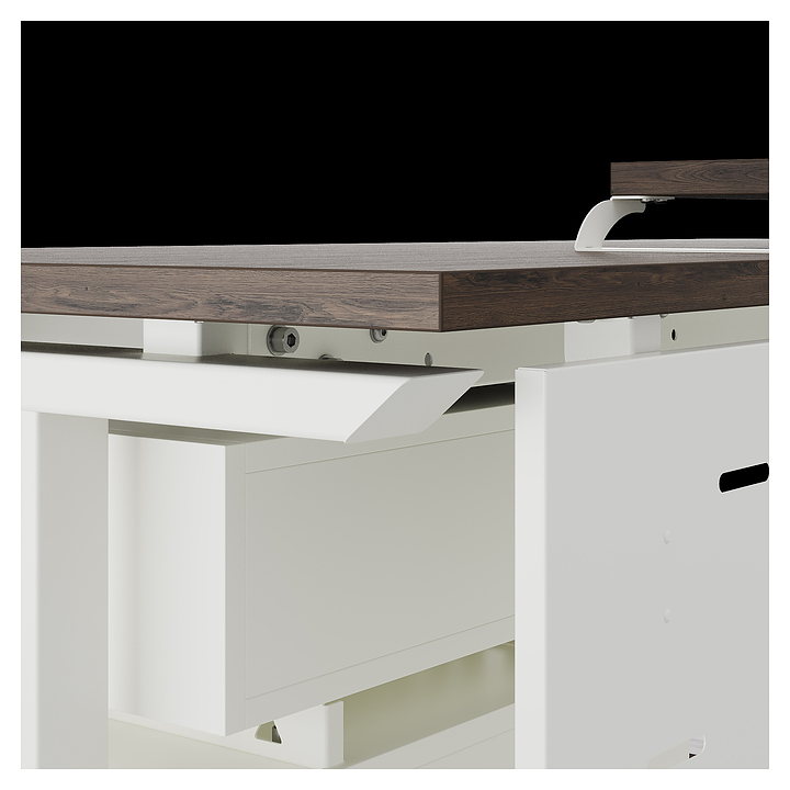 Компьютерный стол Кобор KT-180/80 white/charlston используется в офисных помещениях и кабинетах руководителей. Модель оснащена T-образными опорами. Каркас выполнен из металла, выкрашенного в цвет белый муар (RAL9016), столешница – из ламинированной древесно-стружечной плиты (ЛДСП) цвета дуб чарльстон (H3154 ST36). Опции (заказываются отдельно):