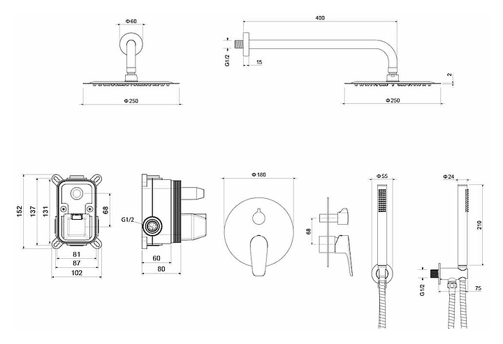 Комплект душевой встраиваемый Aquatek Оберон AQ1172MB черный матовый