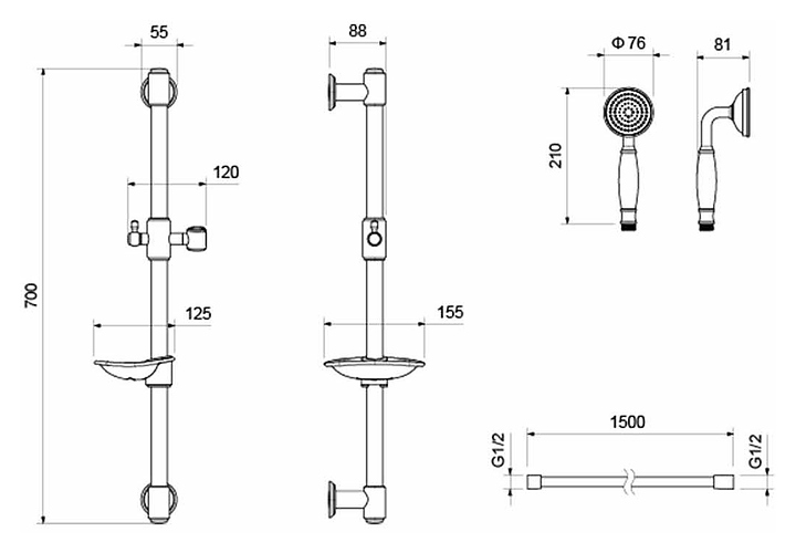 Душевой гарнитур Aquatek 1jet Классик AQ2020MB используется в ванных комнатах. Модель оснащена однорежимным ручным душем с душевым шлангом, штангой с держателем для ручного душа и мыльницей. Изделие выполнено из нержавеющей стали, ручная лейка - из латуни. В комплект поставки входят душевая лейка, держатель душевой лейки, шланг, штанга, мыльница и монтажный комплект. Особенности: