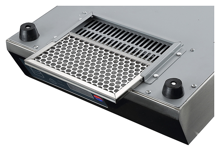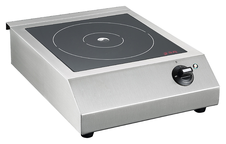 Индукционная плита INDOKOR IN3500 М предназначена для приготовления и быстрого разогрева блюд на предприятиях общественного питания и торговли. Индукционная конфорка включается сразу после установки на нее посуды и выключается, когда ее убирают, за счет этого сокращается энергопотребление и улучшается микроклимат в кухонном помещении. Благодаря медной катушке и высокочастотному электрическому току, тепло интенсивно возникает непосредственно в диске дна посуды и от дна нагревает пищу, так что нагревается не конфорка, а сковорода или кастрюля. Модель оснащена механической панелью управленияс индикатором мощности на поверхности плиты и съемным жировым фильтром для отделения жира и влаги от поступающего внутрь аппарата воздуха. Корпус выполнен из нержавеющей стали AISI 304, рабочая поверхность - из стеклокерамики Schott Ceran. Особенности: