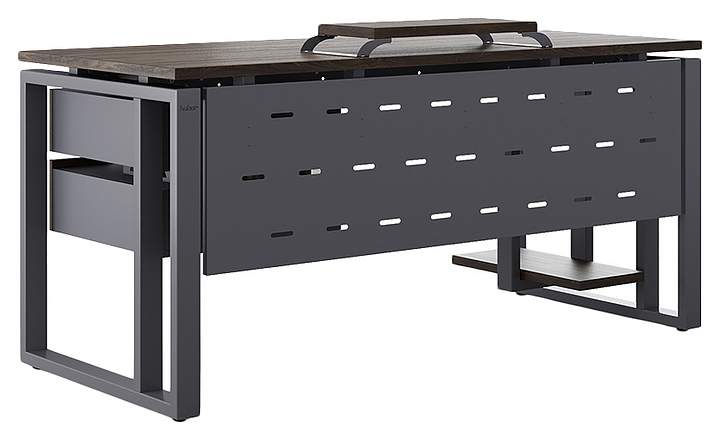 Компьютерный стол Кобор КO2-80/70 graphite/charlston используется в офисных помещениях и кабинетах руководителей. Модель оснащена усиленными вертикальной балкой O-образными опорами. Каркас выполнен из металла, выкрашенного в цвет графит муар (RAL7024), столешница – из ламинированной древесно-стружечной плиты (ЛДСП) цвета дуб чарльстон (H3154 ST36). Опции (заказываются отдельно):