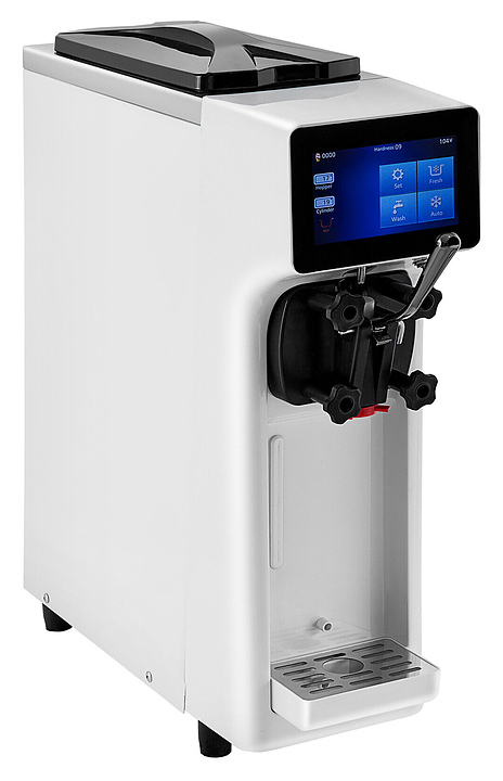 Фризер для мороженого Koreco SSI 105 DIGITAL используется на предприятиях общественного питания и торговли для приготовления мягкого мороженого и десертов на его основе. Модель оснащена сенсорной панелью управления, бункером для жидкой смеси, цилиндром и 1 рожком. Цилиндр и бункер выполнены из нержавеющей стали AISI 304, корпус - из нержавеющей стали Aisi201, окрашенной в белый цвет. В комплект поставки входят набор прокладок, инструмент для разбирания, щетка для чистки цилиндра и пищевая смазка. Особенности: