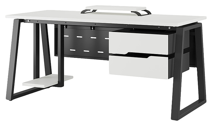 Компьютерный стол Кобор КTR-100/80 black/premium используется в офисных помещениях и кабинетах руководителей. Модель оснащена опорами в форме трапеции. Каркас выполнен из металла, выкрашенного в цвет черный муар (RAL9005), столешница – из ламинированной древесно-стружечной плиты (ЛДСП) цвета белый премиум (W1000 S9). Опции (заказываются отдельно):