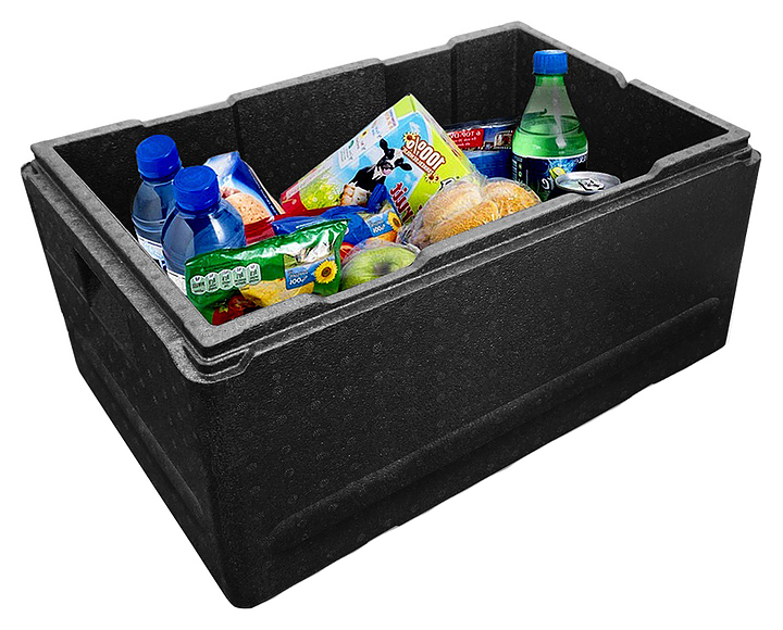 Термоконтейнер TERMOBOX StP Pro N 6424P используется службами доставки предприятий общественного питания и пищевой промышленности, а также в быту, во время туристических походов, пикника, рыбалки или дорожных путешествий для хранения и транспортировки приготовленных блюд, напитков, льда, свежих фруктов и других пищевых продуктов в автономных изотермических условиях. Модель прямоугольно ориентированной формы оснащена съемной плотно прилегающей крышкой. Изделие выполнено из высококачественного вспененного полипропилена (EPP) черного цвета. Особенности: