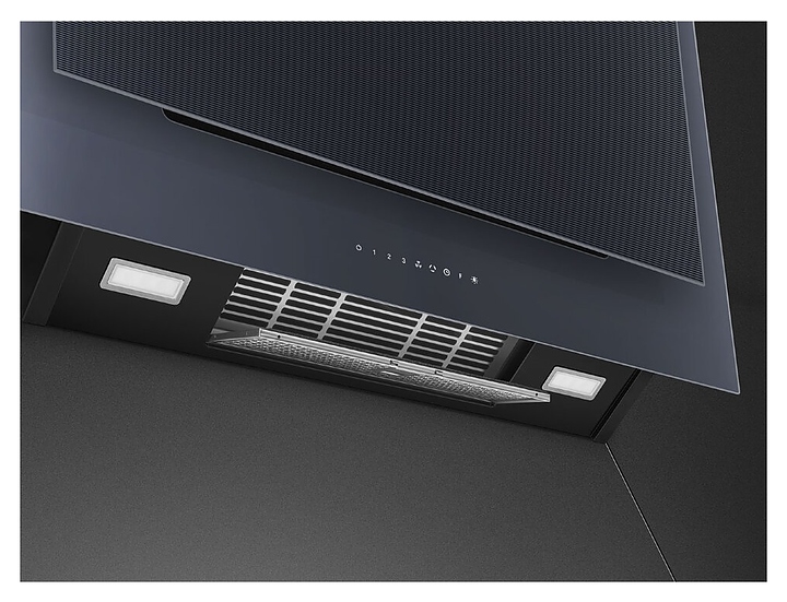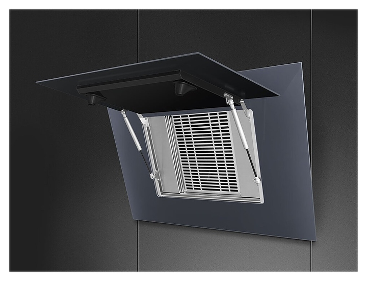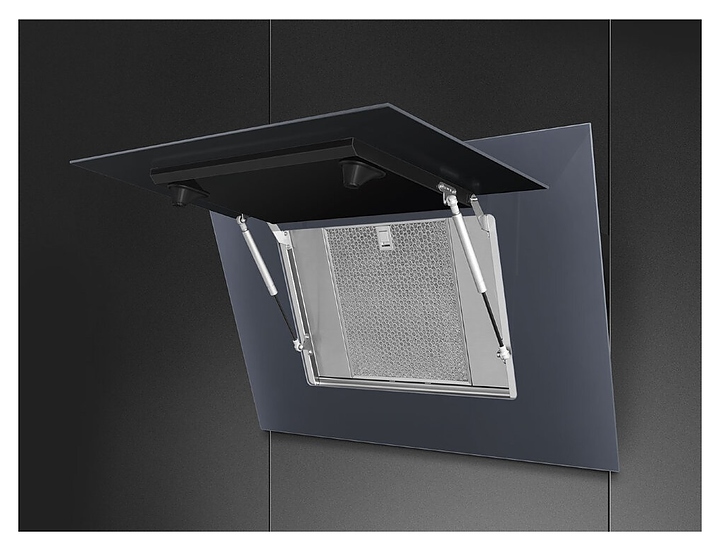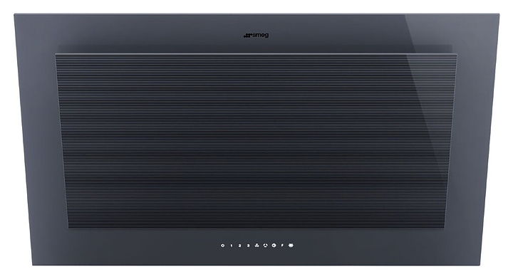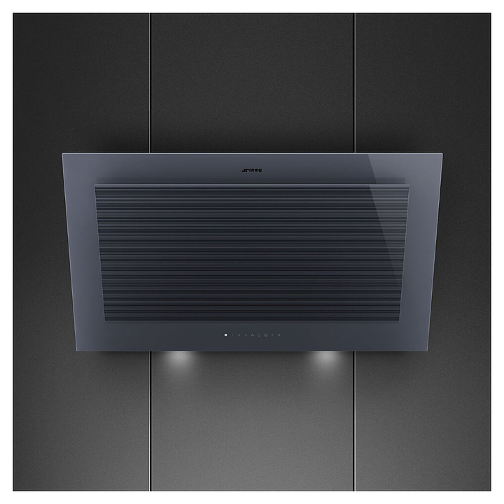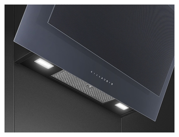 Пристенная кухонная вытяжка SMEG KV194G предназначена для очистки воздуха от продуктов горения, копоти и запахов в процессе приготовления пищи путем принудительной вентиляции в домашних условиях. Модель оснащена электродвигателем, наклонной фасадной панелью, подъемной крышкой, кабелем питания с евровилкой, 2 прямоугольными светильниками и сенсорной панелью управления. Корпус выполнен из стали с антикоррозийным покрытием черного цвета, наклонная панель и крышка – из стекла серого оттенка Neptune Grey с глянцевой поверхностью, жироулавливающий фильтр – из нержавеющей стали.